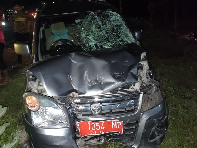 "Benar terjadi kecelakaan mobil dinas plat merah milik salah satu dinas di lingkungan Pemkab Probolinggo, menabrak motor yang berboncengan. Dua korban mengalami luka dirawat di RS PG Wonolangan, Kecamatan Dringu. Barang bukti 2 kendaraan dan sopir mobil plat merah kita amankan untuk dilakukan pemeriksaan," ujar Iptu Nyoman.