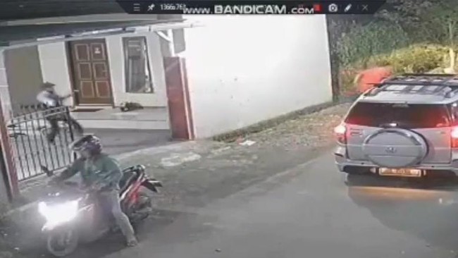 Namun niatnya terhenti dan ia berlari setelah seorang pria dari dalam keluar sambil menodongkan sesuatu seperti pistol. Pria berpistol itu kemudian kabur membonceng temannya yang sudah siap dengan sepeda motor.