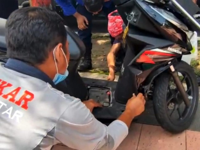 Usai mendapat laporan tersebut, Damkar langsung menuju ke lokasi dan berusaha menangkap ular yang masuk ke dalam motor tersebut.