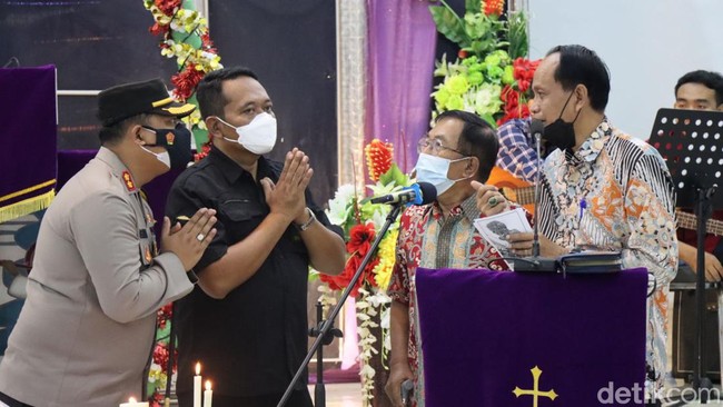 "Terimakasih Bapak Kapolres, Bapak Dandim beserta rombongan atas kerawuhannya atau kehadirannya di Gereja Kristen Indonesia (GKI) Bojonegoro, Kami mengucapkan banyak terima kasih atas dedikasi Bapak Kapolres selama ini yang selalu memberi rasa aman untuk kami masyarakat Bojonegoro dan umat Kristiani pada khususnya," ujar Pendeta Iwan Sukmono.
