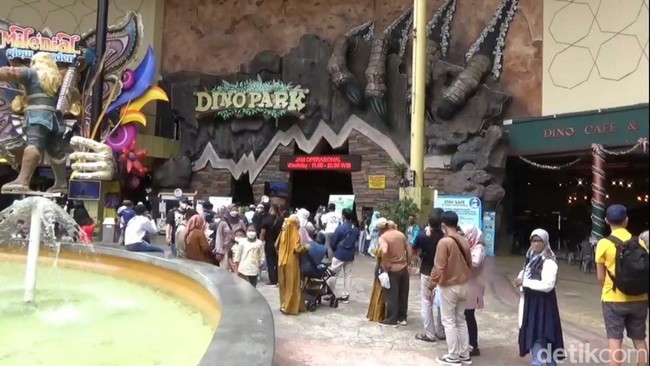 Destinasi wisata ini memang memiliki banyak wahana untuk dikunjungi. Sejak dibuka pukul 11 siang, antrean pengunjung mengular di wahana Dino Park dan Legend Star. Dino Park yang memiliki wahana paling luas itu berisikan replika dinosaurus bergerak.