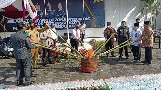 Ada 1.520 botol miras berbagai merk yang dimusnahkan. Untuk narkoba, ada 7.345 butir obat berbahaya, terdiri dari Tryhexipenidhyl, dan Dextro, serta 53 gram sabu dan 8 ekstasi yang dimusnahkan. Barang bukti sabu sebenarnya ada sekitar 700 gram yang disita. Tetapi hanya 53 gram yang dimusnahkan. Sisanya sudah dilimpahkan ke kejaksaan.
