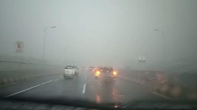 "Hujannya itu mau masuk Suramadu dari sisi Surabaya langsung deras sama angin-anginnya. Roda empat jalannya pelan. Kalau sepeda motor kebanyakan nggak berani," kata Ichonk kepada detikcom, Senin (27/12/2021).