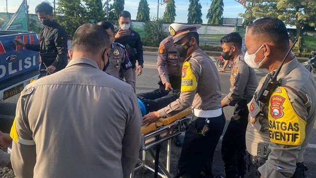 AKBP Miko menghentikan kendaraan rombongan dan memimpin langsung penanganan kecelakaan. Ngatmo mengalami luka berat di bagian kepala. Korban langsung dibawa oleh kendaraan Satlantas Polres Lamongan menuju Puskesmas Duduk Sampeyan.