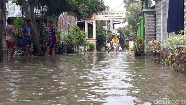 "Terus naik siang ini air genangannya. Terpaksa kami sekeluarga harus ngungsi di depan sana, dekat pertokoan," ujar warga Kalianyar Permai, Menik kepada detikcom, Rabu (29/12/2021).