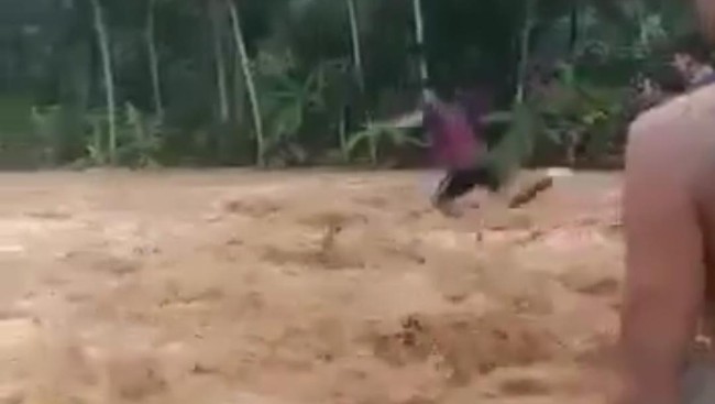 Dalam video berdurasi 30 detik itu, tampak empat remaja menceburkan diri dari atas jembatan ke aliran sungai secara bergiliran. Padahal kondisi sungai sedang terjadi banjir besar dengan arus sungai yang sangat deras.