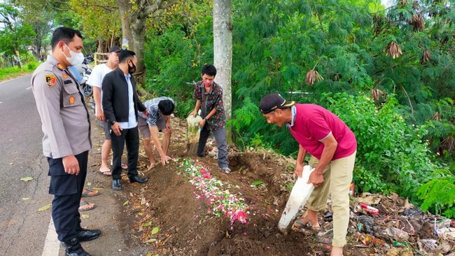 "Memang benar ada gundukan tanah yang menyerupai kuburan. Itu bukan kuburan beneran," kata Kapolsek Prigen AKP Bambang Tri Sutrisno, Rabu (5/1/2022).