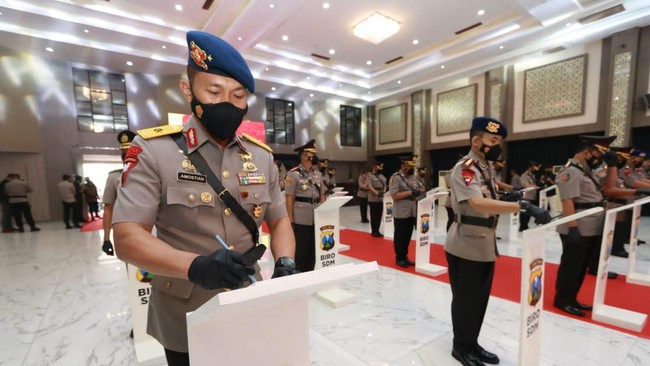 "Saya memberikan apresiasi atas pengabdian para PJU dan Kapolres yang selama ini telah menorehkan lukisan indah selama bertugas di Jawa Timur," kata Nico di Gedung Mahameru Mapolda Jatim Jalan Ahmad Yani Surabaya, Jumat (7/1/2022).