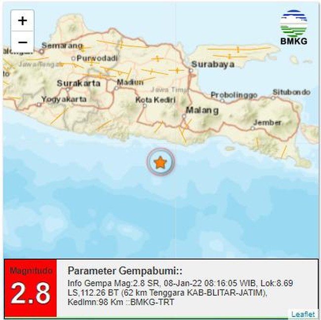 Kendati demikian, gempa ini tidak dirasakan masyarakat. "Gempa tidak dirasakan," kata BMKG Karangkates Malang kepada detikcom di Surabaya, Sabtu (8/1/2022).