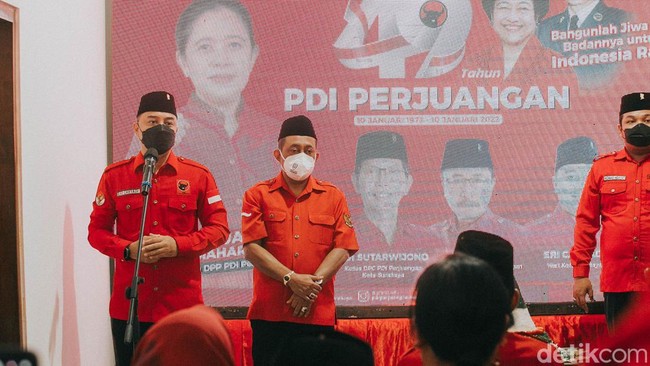 Wali Kota Surabaya Eri Cahyadi dan Wawali Armujimengikuti upacara yang dipimpin oleh Bendahara PDIP Surabaya, Taru Sasmita. Sedangkan Ketua DPC PDIP Surabaya, Adi Sutarwijono mengikuti upacara HUT di DPP PDIP, Jakarta.