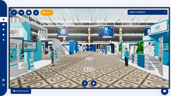 Selanjutnya pengunjung akan diberikan pilihan untuk berkunjung ke Auditorium dan Hall A, B, C atau D. Di ruang virtual Auditorium, pengunjung dapat menyaksikan talk show dan sharing session tentang dunia usaha dan industri disuguhkan.