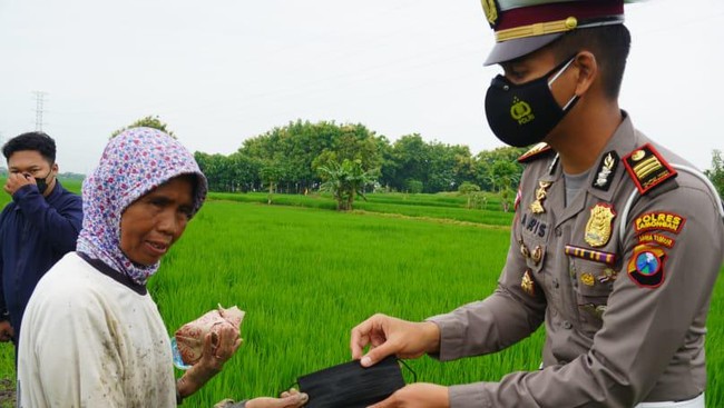 Sumiati, salah satu petani yang ditemui anggota Satlantas misalnya. Ia meminta para polisi tidak perlu turun langsung dan menghampirinya hingga ke tengah sawah.