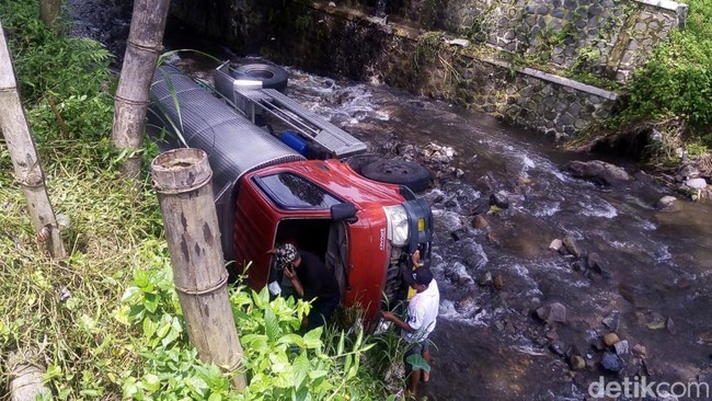 Setelah menabrak pembatas jembatan, kata Wihandoko, truk tangki air tercebur ke sungai dengan kedalaman sekitar 3 meter dari permukaan jalan. Akibatnya, sopir truk tangki, Agus menderita luka ringan. Korban menjalani perawatan di Puskesmas Pacet.
