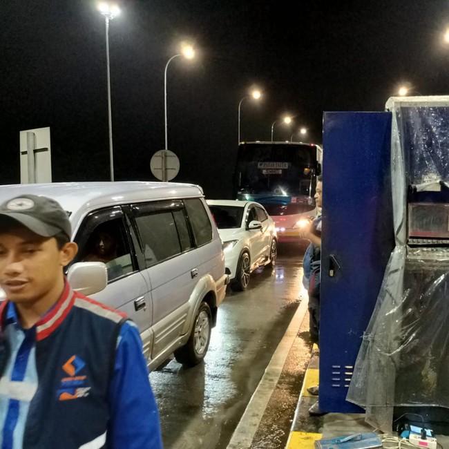 Pantauan di lokasi pukul 18.25 WIB, kemacetan hingga 1 KM. Kemacetan baru terurai saat petugas membuka secara manual satu GTO. Sedangkan sisanya langsung dilakukan perbaikan.