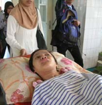 Jember - Laili Faradiska Ardila (12) menjalani fisioterapi di RSUD dr Soebandi Jember, Kamis (19/07/07). Anak perempuan itu lumpuh setelah disuntik oleh dokter spesialis THT rumah sakit tersebut, Juli 2003 lalu.Selama empat tahun Laili menjalani fisioterapi untuk merangsang syaraf-syarafnya agar berfungsi kembali. Laili menjalani fisioterapi seminggu dua kali yakni tiap hari Senin dan Kamis.Ketika keluar dari ruangan fisioterapi terlihat Laili hanya terbujur kaku di brankar yang akan membawanya ke ambulans. Mulutnya nampak kaku dan terbuka sedikit. Dibalik selimut yang menutupi badannya, terlihat tanggan kirinya kaku dan agak tertekuk di atas badannya. Saat dipanggil namanya, Laili mengedipkan matanya. Siti Nurhasanah, ibu Laili yang mendampingi selama menjalani fisioterapi tidak mau berkomentar tentang pengobatan anaknya.Sementara, dokter yang merawat Laili, dr Budi Rahardjo juga tidak mau menjawab kondisi kesehatan Laili karena sedang tugas ke luar kota. "Memang dia saya tangani dan sedang menjalani fisioterapi. Tetapi untuk detailnya saya tidak bisa menjawab karena saya sedang di Jakarta," kata Budi.Seperti diberitakan, Laili mengalami kelumpuhan setelah mendapatkan suntikan sebelum operasi amandel 2003 silam. Setelah dua kali disuntik obat anti biaotik, tubuhnya kejang dan langsung tidak sadarkan diri.Setelah itu tubuhnya kaku dengan organ tubuh seperti tangan dan kaki tidak bisa digerakkan. Dia hanya mampu tergolek di ranjangnya selama empat tahun ini. Dia tidak bisa meneruskan pendidikan dasarnya.Selain Laili, Ayudyah Sasi,29 warga Kelurahan Sukorejo Kecamatan Sumbersari juga tergolek kaku di atas ranjang. Dia mengalami kelumpuhan tersebut sejak Agustus 2005 paska operasi seksio (caesar) ketika melahirkan anak keduanya di RSUD dr Soebandi Jember. Ayudyah mengalami gangguan motorik sehingga tangan dan kakunya tidak bisa digerakkan, indra pendengaran dan penglihatan juga terganggu.Ayudyah Sasi dirawat di ruang Anggrek I (bekas kamar Laili) RSUD dr Soebandi selama dua tahun dan Selasa (17/7/2007) lalu baru dipulangkan ke rumahnya. Ayu saat ini menjalani perawatan di rumah.