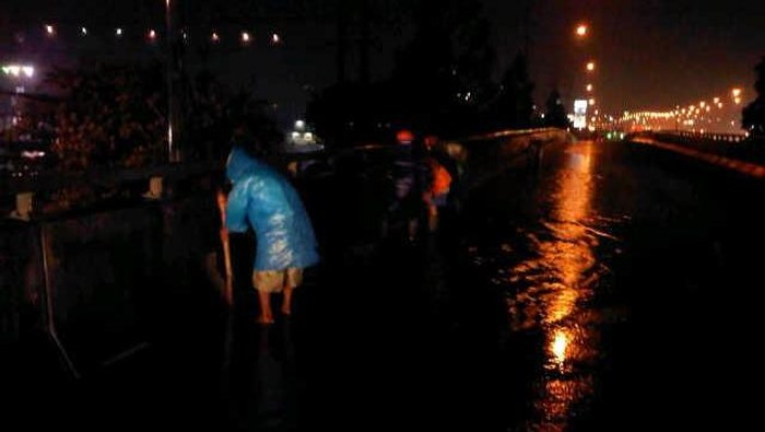 Menurut petugas NTMC Polri, Amir, ketinggian genangan di dua arah jalan layang tersebut mencapai 30-40 cm. AKibatnya lalu lintas di lokasi terpantau tersendat.