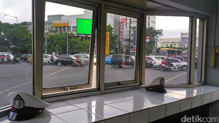 Lokasi pos polisi tempat anggota Polantas cuek ketika ditanya soal tilang. (Denita Matondang/detikcom)