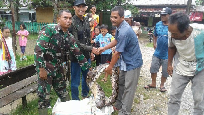 Menurut Sapto, warga sengaja menangkap piton raksasa ini karena merasa resah dan takut dimangsa seperti kejadian di Mamuju, Sulawesi Barat beberapa bulan lalu. Saat diserahkan, ular tersebut dimasukkan ke dalam karung besar. Beberapa warga termasuk anak kecil ikut menyaksikannya.