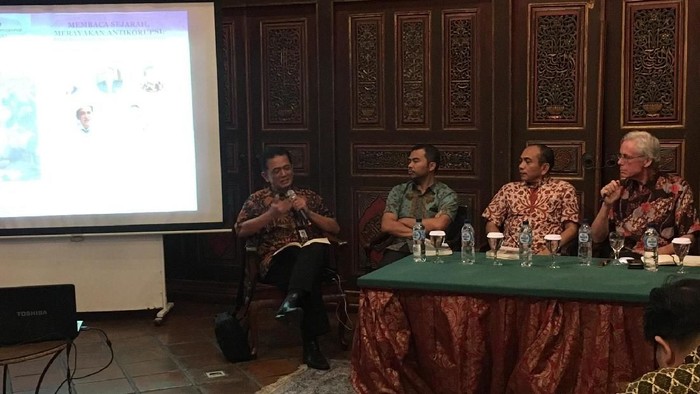 Mantan Komisioner KPK Chandra M Hamzah memaparkan kasus korupsi yang terjadi pada 1945. (Indra Komara/detikcom)