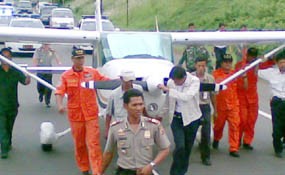 Pantauan detikcom di lokasi, Rabu (29/10/2008), badan pesawat tidak ada yang lecet sama sekali. Kondisi roda masih seperti biasanya, baling-baling pesawat utuh, sayap pesawat normal dan bendera merah putih serta nomor badan pesawat masih terlihat.