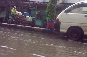Beruntung, hari ini, cuaca cukup cerah meski mendung masih menggelayut. Jika tidak, genangan tersebut pasti akan bertambah tinggi. (try/djo)