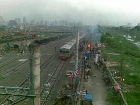 over Tanah Abang. Pengendara memarkir kendaraan dan berhenti sejenak untuk melihat penggusuran dari atas.