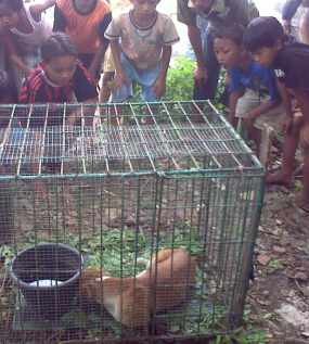 Beberapa kali, anak-anak menggoda anjing itu. Tapi binatang berwarna coklat dan berekor sepanjang 20 cm itu diam saja.