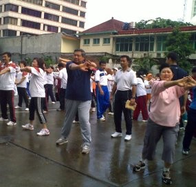 Ikut dalam acara senam pagi ini Menteri Pemuda dan Olah Raga Andi Mallarangeng bersama istri. Juga tampak jajaran petinggi Kemendag.