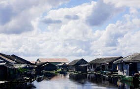Ketinting pun perlahan melaju menembus Sungai Mahakam yang mulai tercemar. Sepanjang perjalanan, di kanan kiri sungai berdiri rumah panggung dari bilik papan. Di depan rumah tersebutย juga berdiri sebuah kotak dari papan sebagai toilet. Beberapa di antaranya, tak berpanggung, tapi berdiri diatas balok-balok kayu ibarat kapal.
