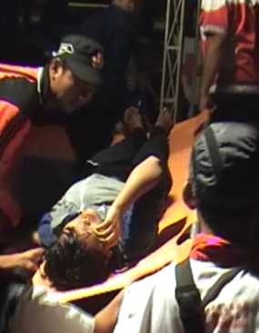 Bahkan, sejumlah penonton sempat terlibat aksi saling lempar sepatu dan sandal. "Saya tidak tahu tiba-tiba kepala saya sudah berdarah saat berjoged,β ujar rizki salah seorang penonton.