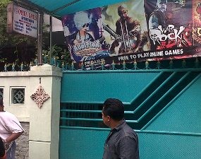 Warnet ini sudah digembok. Namun tidak ada police line di depannya. Warnet ini juga sudah sepi. Hanya ada 3 polisi dari Polsek Tanjung Duren yang masih berjaga di sekitar lokasi.