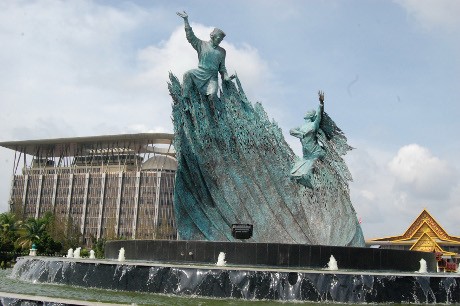 Riski menyebut, pembangunan patung itu dikerjakan Dinas PU Provinsi Riau. Dananya diperkirakan sebesar Rp 4 miliar. Dana itu sudah termasuk untuk membangun kolam yang melingkar di bawah tugu tersebut.