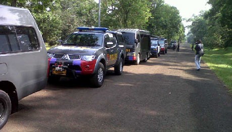 Pantauan detikcom, Jumat (17/2/2012) pukul 08.45 Wib, ada sekitar tujuh mobil polisi yang berjaga-jaga di depan hutan yang terletak persis di depan Fakultas Teknik UI. Sebuah jalur yang bisa langsung menembus Wisma Makara UI juga dijaga oleh sekitar tujuh polisi.