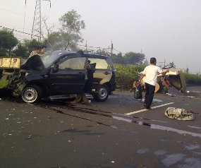 "Sebuah mobil Camry B 8349 SI yang berasal dari lajur arah BSD, melompat terbalik kearah Jakarta dan menabrak mobil Terios B 1923 UFP," sambung Ika, petugas Jasamarga lainnya.