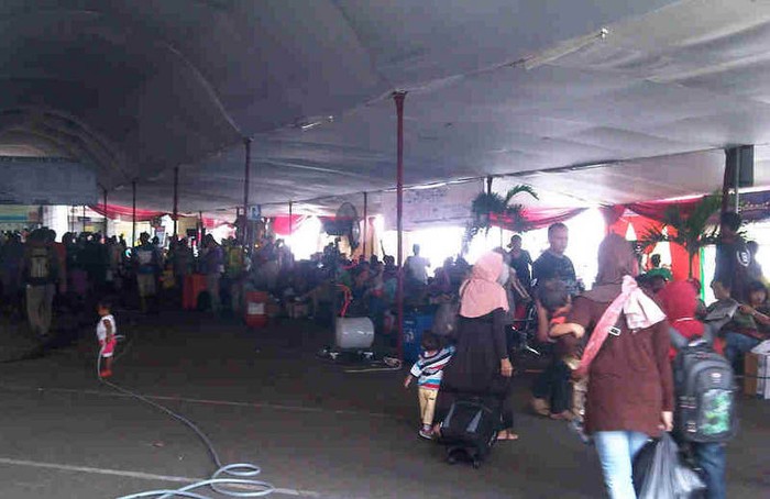 Karena masih banyaknya para pemudik yang hendak naik kereta, maka ruang tunggu tampak penuh. Bangku-bangku penuh terisi, hingga tikar yang digelar di sekitar tenda.