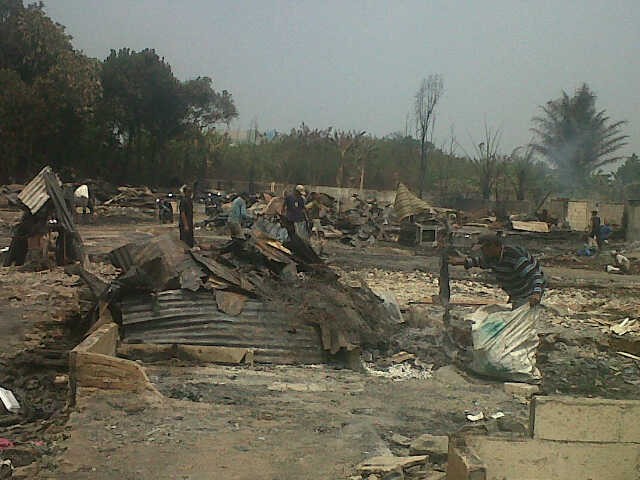 Di lokasi itu, terlihat ada 2 mobil pick up yang ludes terbakar. Ada juga mesin cuci serta genset yang sudah hangus. Sedangkan bangunan-bangunan rata dengan tanah.