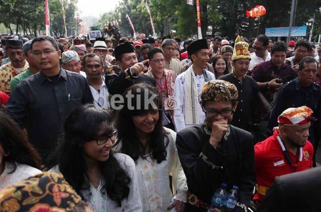 "Kalau kita lihat tadi antusiasmenya tinggi bagus sekali sampai 10.020 peserta yang ikut," lanjut Jokowi yang ikut karnaval dengan mengenakan baju adat Betawi baju koko, peci dan sarung yang menggantung di lehernya.