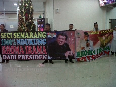 Saat melihat salah satu spanduk bertuliskan "SFCI Semarang 1000% Ndukung Rhoma Irama Dadi Presiden", raja dangdut tersenyum dan menyempatkan berpose untuk berfoto dengan para penggemarnya.