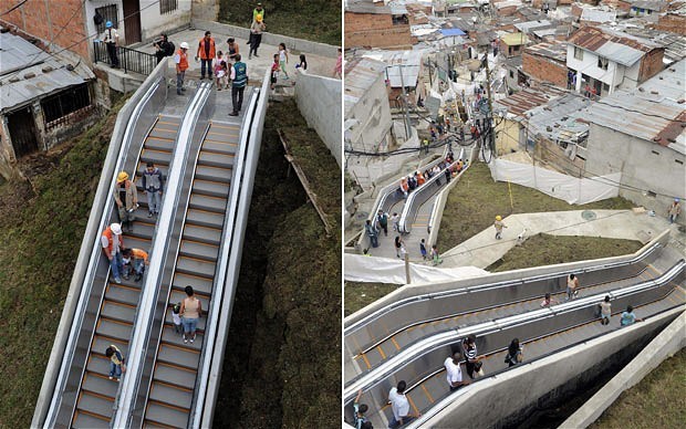 Adanya eskalator ini memangkas waktu perjalanan warga yang sebelumnya hanya berjalan kaki menuruni perbukitan selama 1,5 jam menjadi 'hanya' 5 menit saja. Eskalator ini dibangun dengan biaya US$ 7 juta alias Rp 67 miliar.