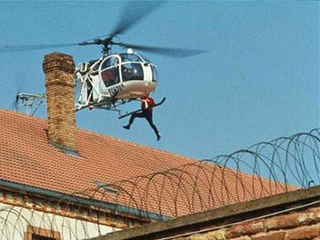 Vlastos rupanya mencarter helikopter, di dalam heli itu sudah ada 2 penumpang bersenjata, seorang pilot dan seorang teknisi. Heli itu menurunkan tali dan segera hendak menarik Vlastos pergi, bersamaan dengan itu penumpang bersenjata menembaki penjaga penjara. Dor..dor..dor!