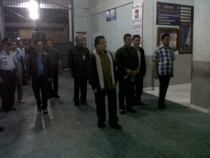 Setelah sempat berdialog dengan sipir dan petugas jaga, rombongan akhirnya keluar Lapas, Kamis (11/4/2013) sekitar pukul 00.15 WITA.