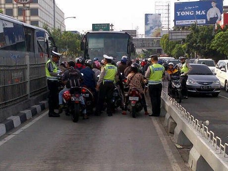 Hal ini terjadi di Jalan Jatinegara Barat, Jakarta Timur, Senin (25/11/2013). Mobil sedan Toyota Lexus berwarna hitam itu nekat masuk busway dan dihentikan polisi pada pukul 13.15 WIB.
