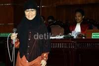 Bu Pur datang ke Pengadilan Tipikor, Jl HR Rasuna Said, Kuningan, Jaksel, Selasa (10/12/2013) mengenakan baju terusan warna cokelat dan kerudung hitam. Istri dari staf khusus menteri Syarif Hasan itu dengan santai menjelaskan semua hal yang ditanya hakim, jaksa penuntut umum dan tim kuasa hukum.