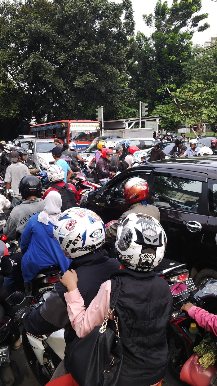 Para pemotor ini terus merangsek bila ada celah kosong. Padahal, apa yang mereka lakukan bukan hanya soal macet saja, tapi juga berbahaya bagi diri dia sendiri dan juga orang lain.