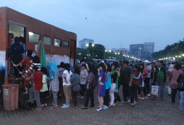 Antrean lebih panjang terlihat di toilet kaum hawa. Sementara antrean untuk pintu toilet lelaki lebih pendek setengahnya. Kemungkinan antrean ini akan lebih panjang lagi jika malam semakin larut.
