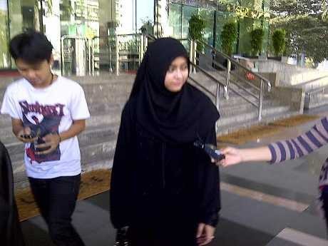 Darin Mumtazah (19) yang dahulu menghilang kini muncul menjenguk suaminya, Luthfi Hasan Ishaaq. Istri ketiga mantan Presiden PKS itu masih malu-malu buka suara.