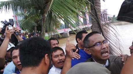 Ucapannya ini disambut tawa Wagub Banten Rano Karno, Bupati Tangerang Ahmed Zaki Iskandar serta Wali Kota Tangerang Arief Rachadiono Wismansyah. Ia lalu menjelaskan spanduk tersebut sebenarnya bentuk keprihatinan warga Tangerang akan menerima banjir yang lebih besar untuk menyelamatkan Jakarta.