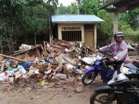 Sampah dan lumpur tampak masih berserakan di jalanan.