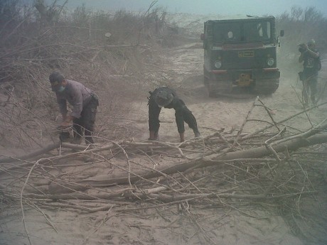 Awan panas Gunung Sinabung menerjang apapun. Belasan orang tewas. Desa terdekat dengan puncak rusak parah.