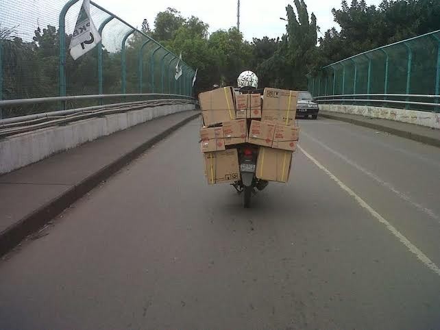 2. Mengendarai Motor dengan Belanjaan Bejibun